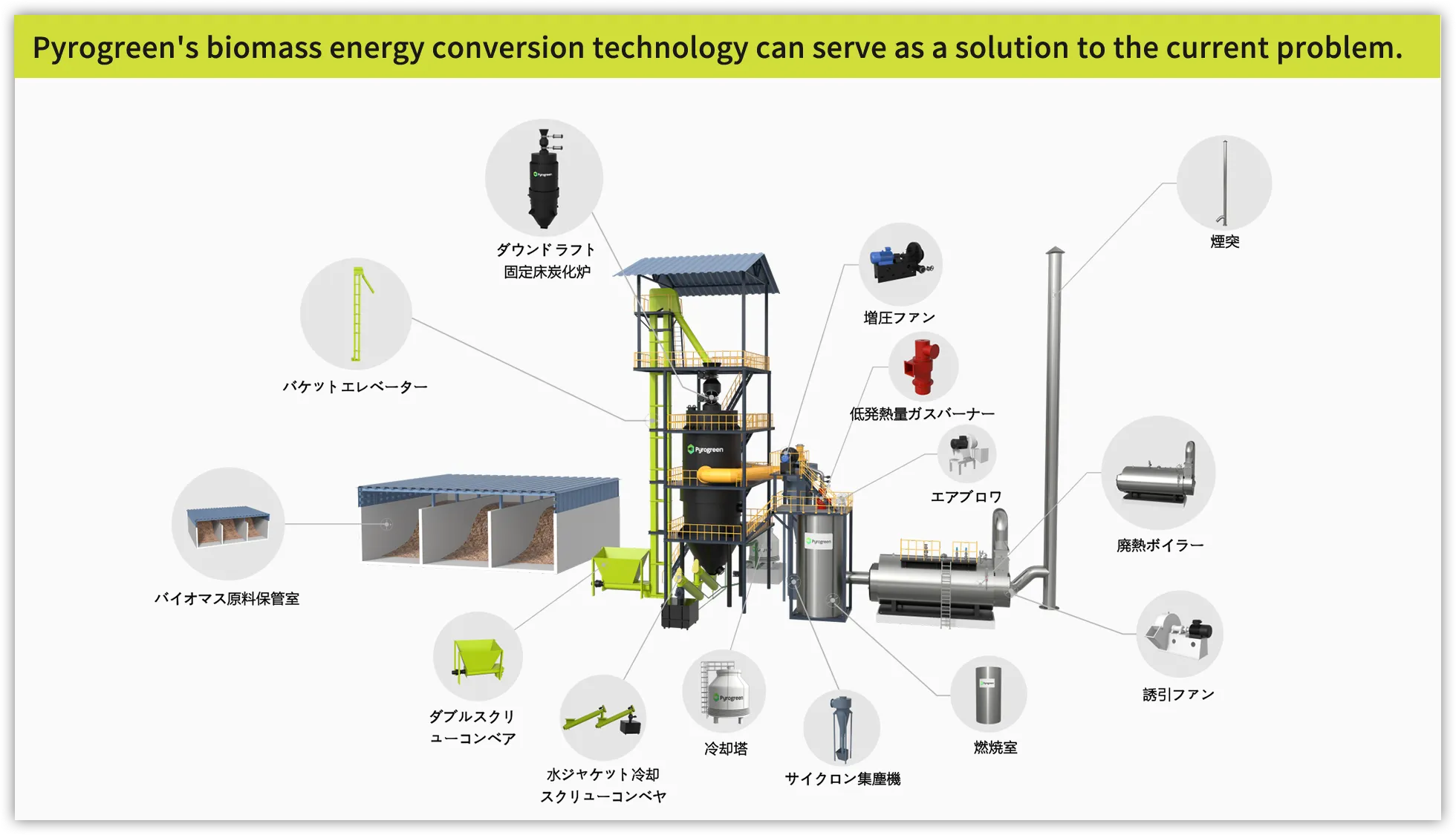 Pyrogreen技術はあらゆる種類のバイオマスを変換し 付加価値のあるグリーンカーボン製品にします。
