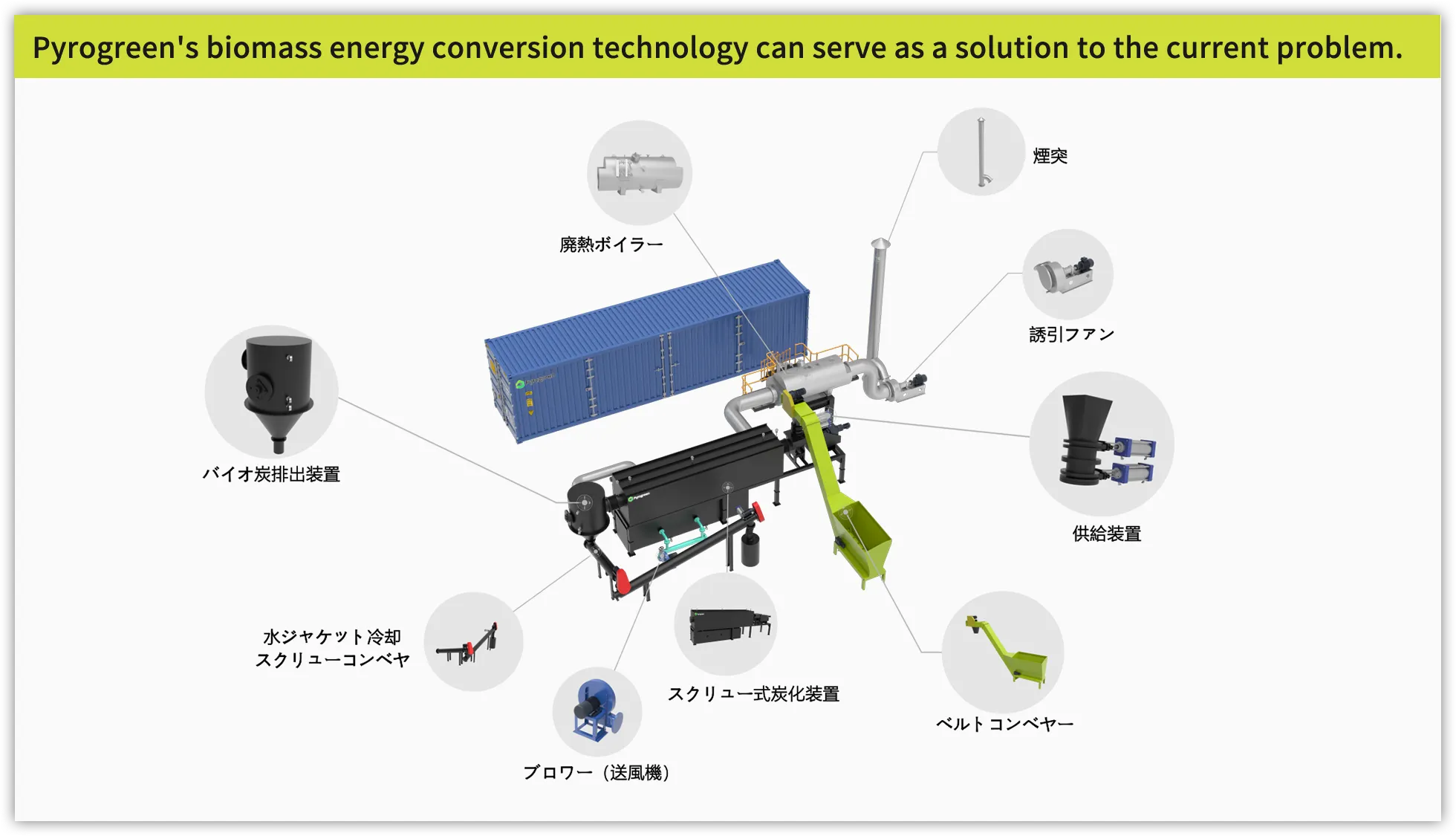 高い熱効率と高品質・高収量のバイオチャー生産。